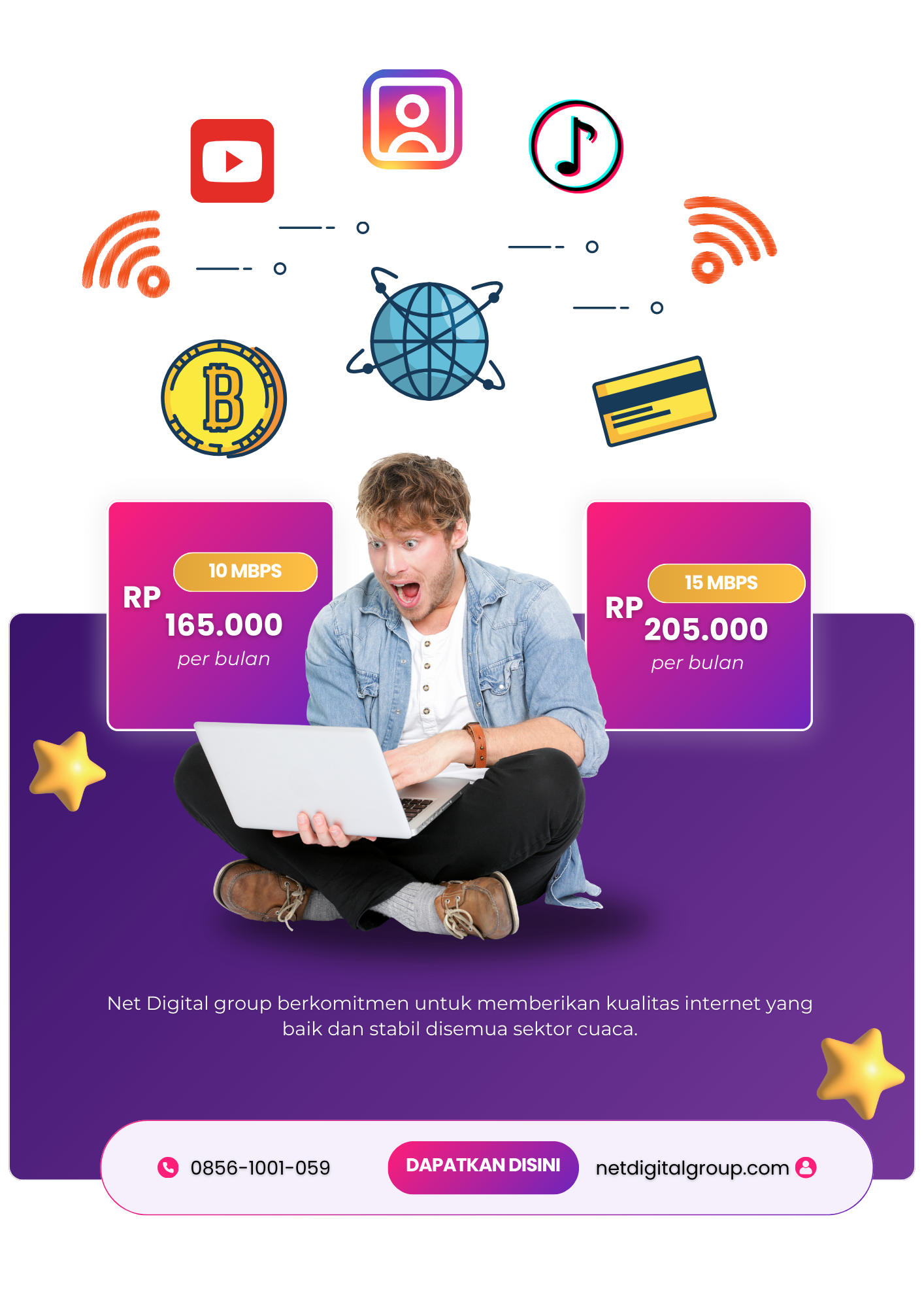 Saya sudah menggunakan Net Digital Group selama setahun dan sangat puas dengan kualitas internetnya. Kecepatan unduh dan unggah yang konsisten membantu saya menyelesaikan proyek tepat waktu. Sangat direkomendasikan!